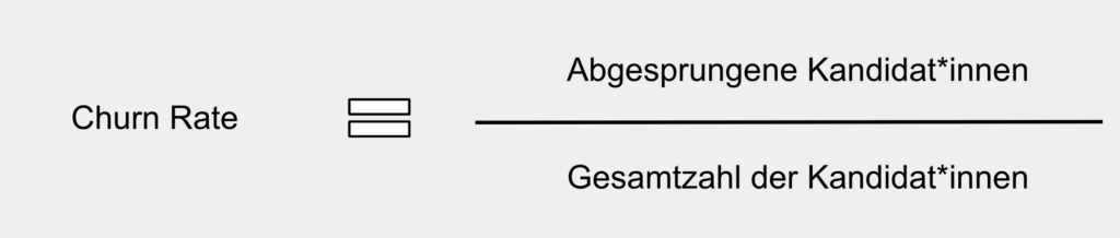 Die Churn Rate beschreibt die Rate der Kandidaten die den Prozess abbrechen. Diese Kennzahl kann insgesamt über alle Kandidaten gemessen werden, für mehr Aussagekraft, bietet sich auch die Churn Rate per Channel an, diese gibt Aufschuss über die Channel Effectiveness im Kombination mit den Kosten. Ist die Churn Rate bei einem Channel zu hoch kann man prüfen ob sich bestimmte Dinge ggf. verbessern lassen.